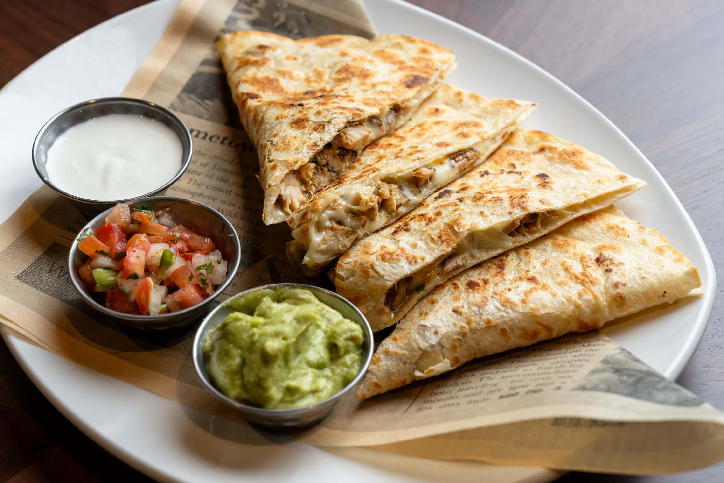 12' XL Flour Tortilla Loaded with monterey jack cheese & served with pico de gallo, sour cream & guacamole.