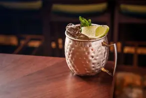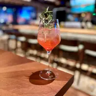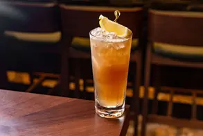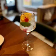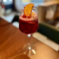 Our house old fashioned, made with Jack Daniels Bonded bourbon, demerara sugar, angostura bitters, served on large spherical ice with brandied cherries & orange peel for aromatics.
