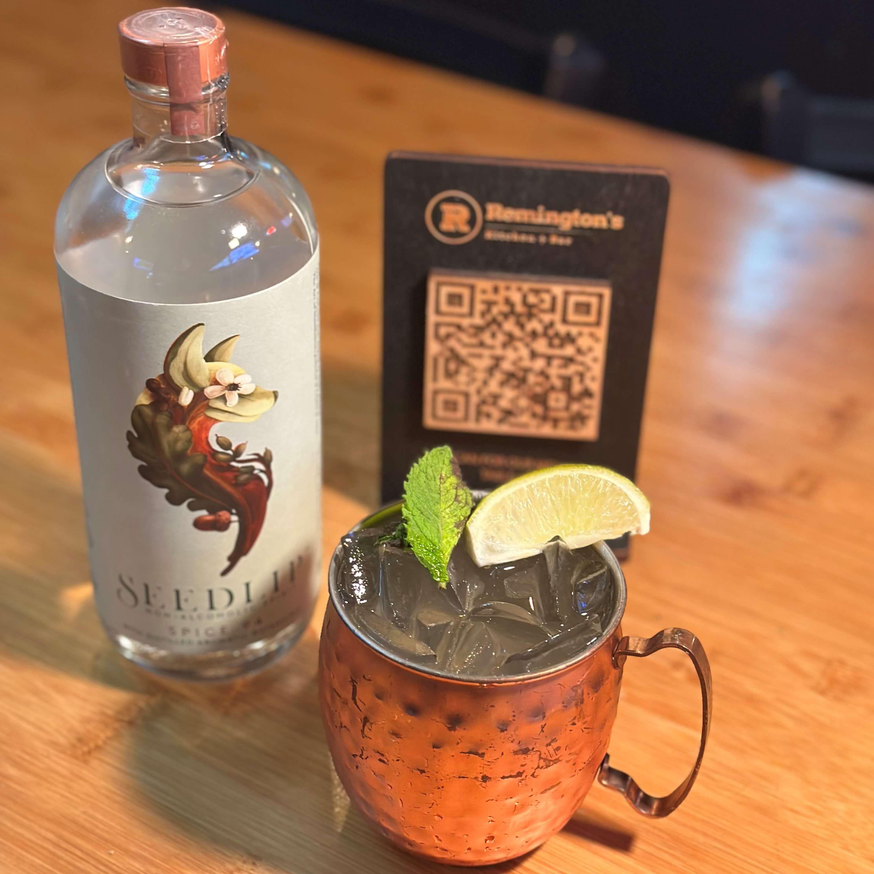 Made with seedlip spice 94 non alcoholic spirit, fresh lime juice, grapefruit bitters, simple syrup & topped with ginger beer.