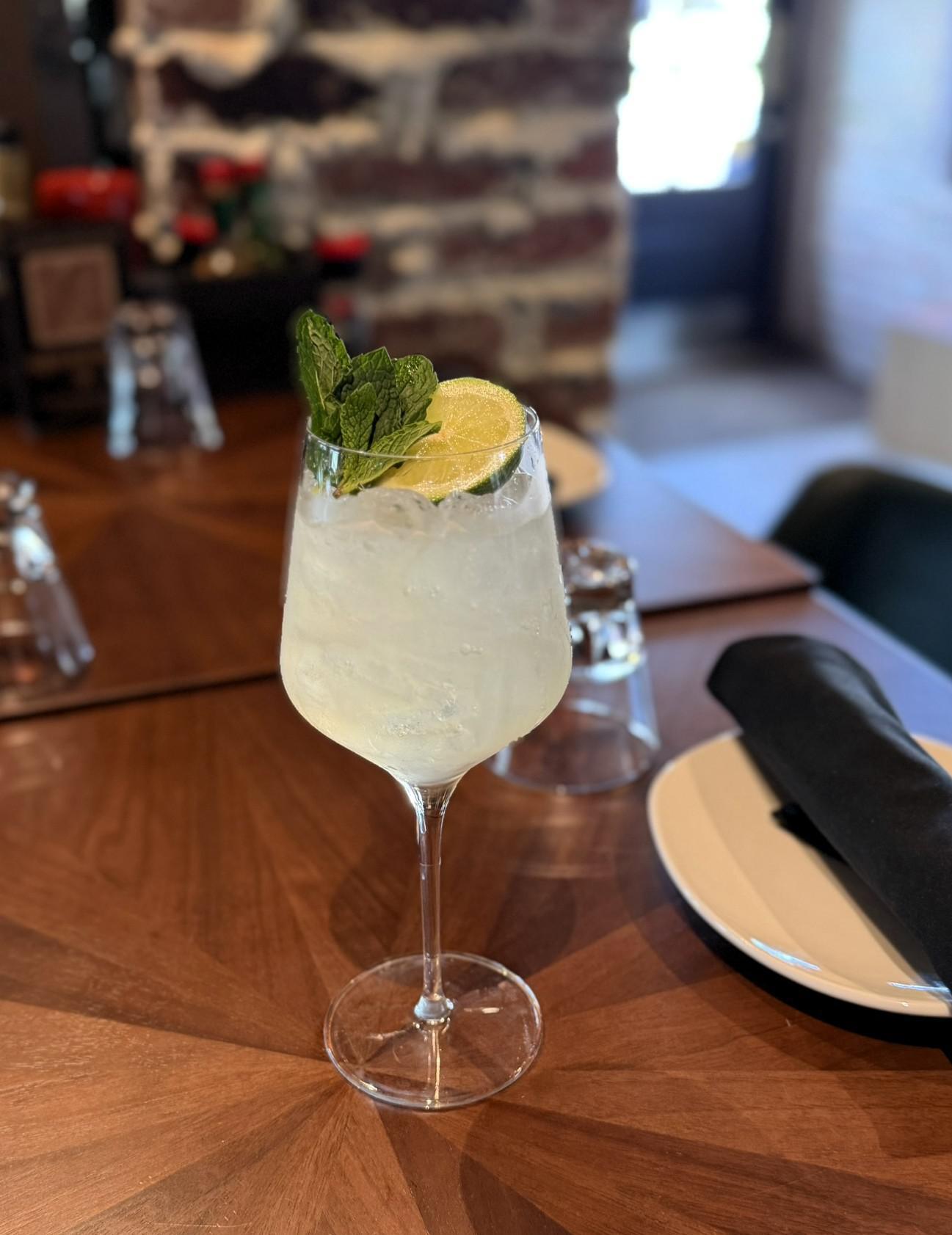 Elderflower Liquer cucumber mint vodka with freshly squeezed lemon and fragrant mint, lifted by lively Cava and a splash of seltzer for a light, effervescent finish.