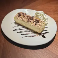 In-House baked Velvety cheesecake crowned with traditional tiramisu flavors of espresso and sweet mascarpone cream, finished with a refined dusting of cocoa powder & Shaved 95% dark chocolate.