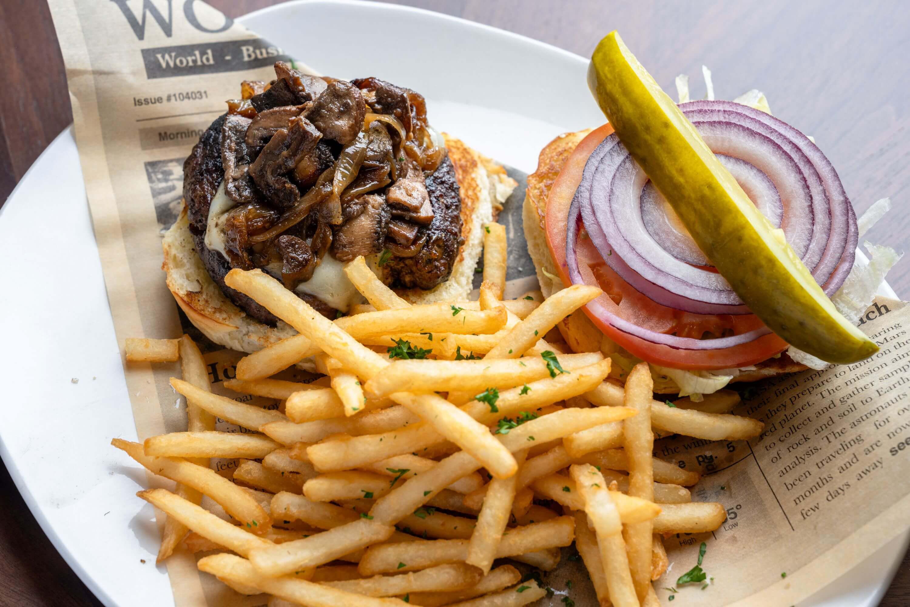 (cremini mushrooms, caramelized onions,gruyere cheese & horseradish aioli.)