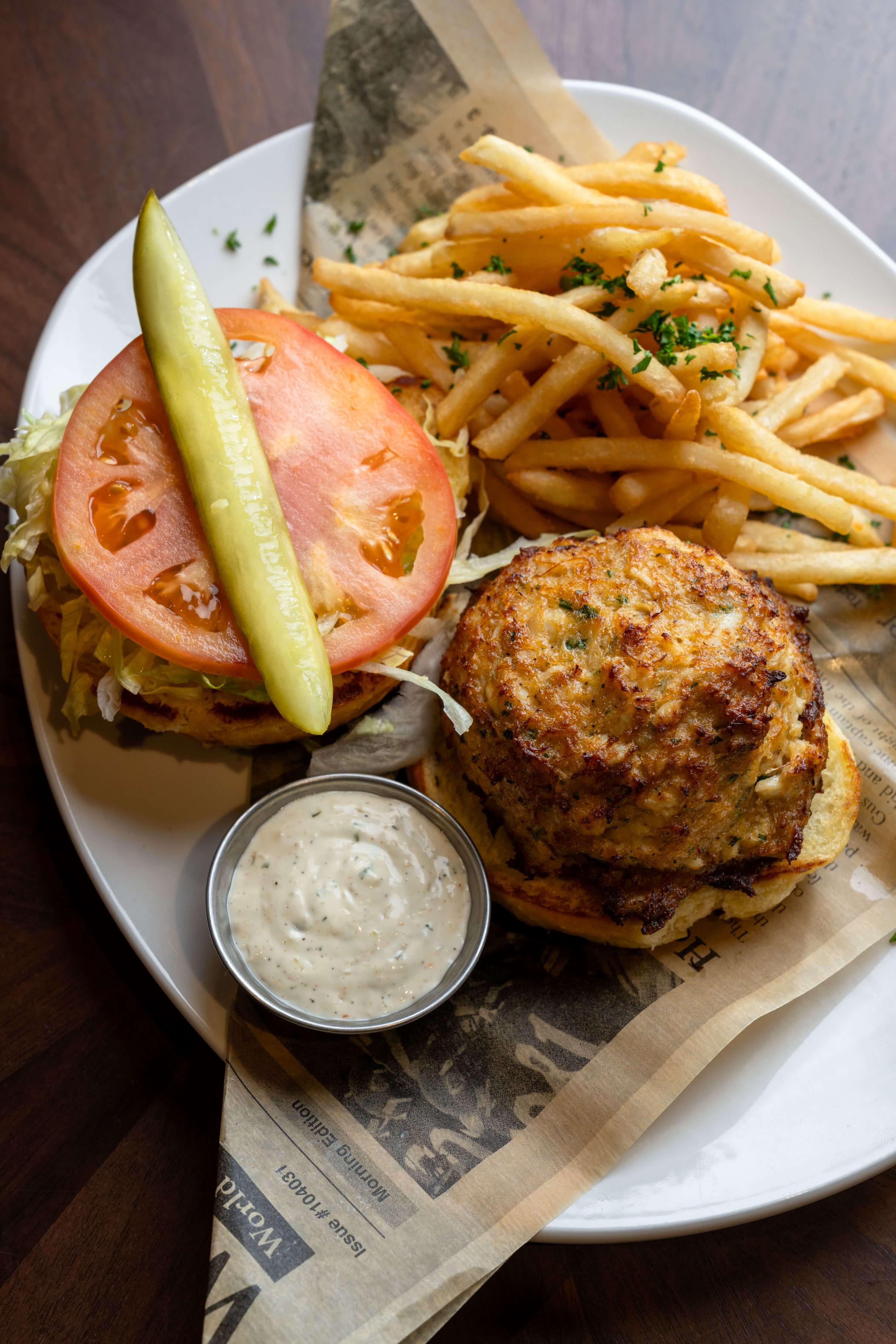 Blend of jumbo lump & Colossal blue crab meat, a few spices & little to almost no filler in our cakes. Served on a buttery brioche bun with Lettuce & Tomatoes, with a side of tartar sauce.